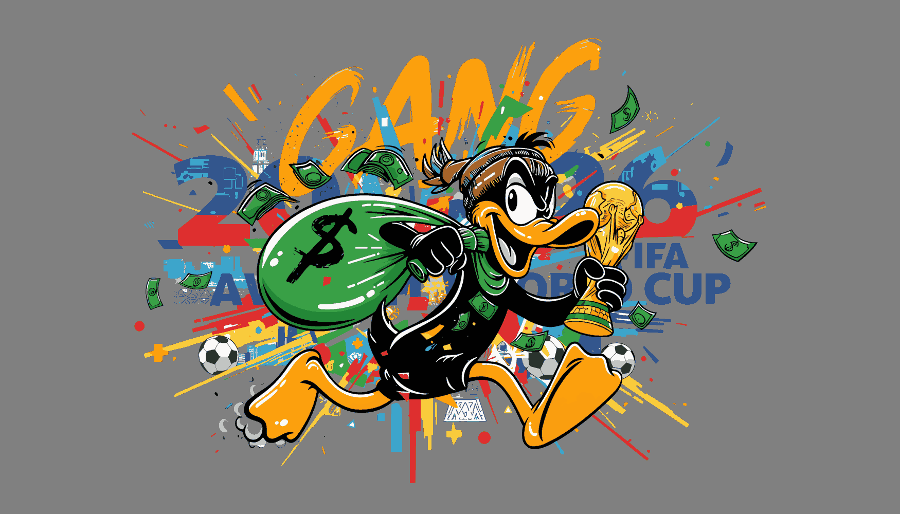 - Duck Gang 2026: El pato más rico del fútbol cargando el trofeo y una bolsa llena de billetes 💸🏆 – porque ganar el Mundial es ser GANG total 🔥