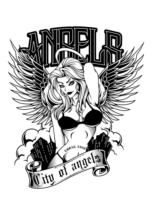 Urban Angel – City of Angels Blackwork Tattoo Design