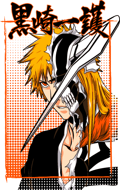 - Ichigo Kurosaki – Hollow Mask (Bleach) Ichigo en su forma más poderosa con la máscara Hollow, cabello naranja icónico y espada Zangetsu. Diseño épico y lleno de actitud.
