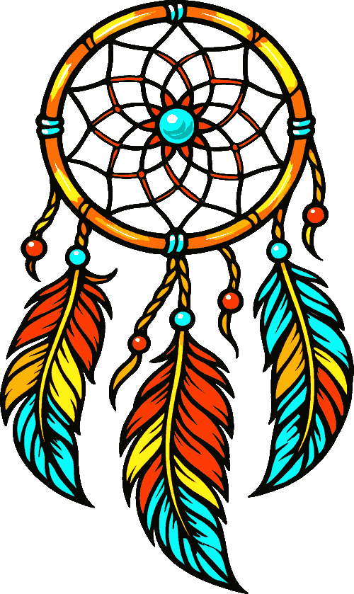 - Dreamcatcher Colorido Atrapa-sueños tradicional con aro en degradado naranja-amarillo, plumas vibrantes en rojo, amarillo y turquesa, y una turquesa central. Clásico y lleno de energía positiva.
