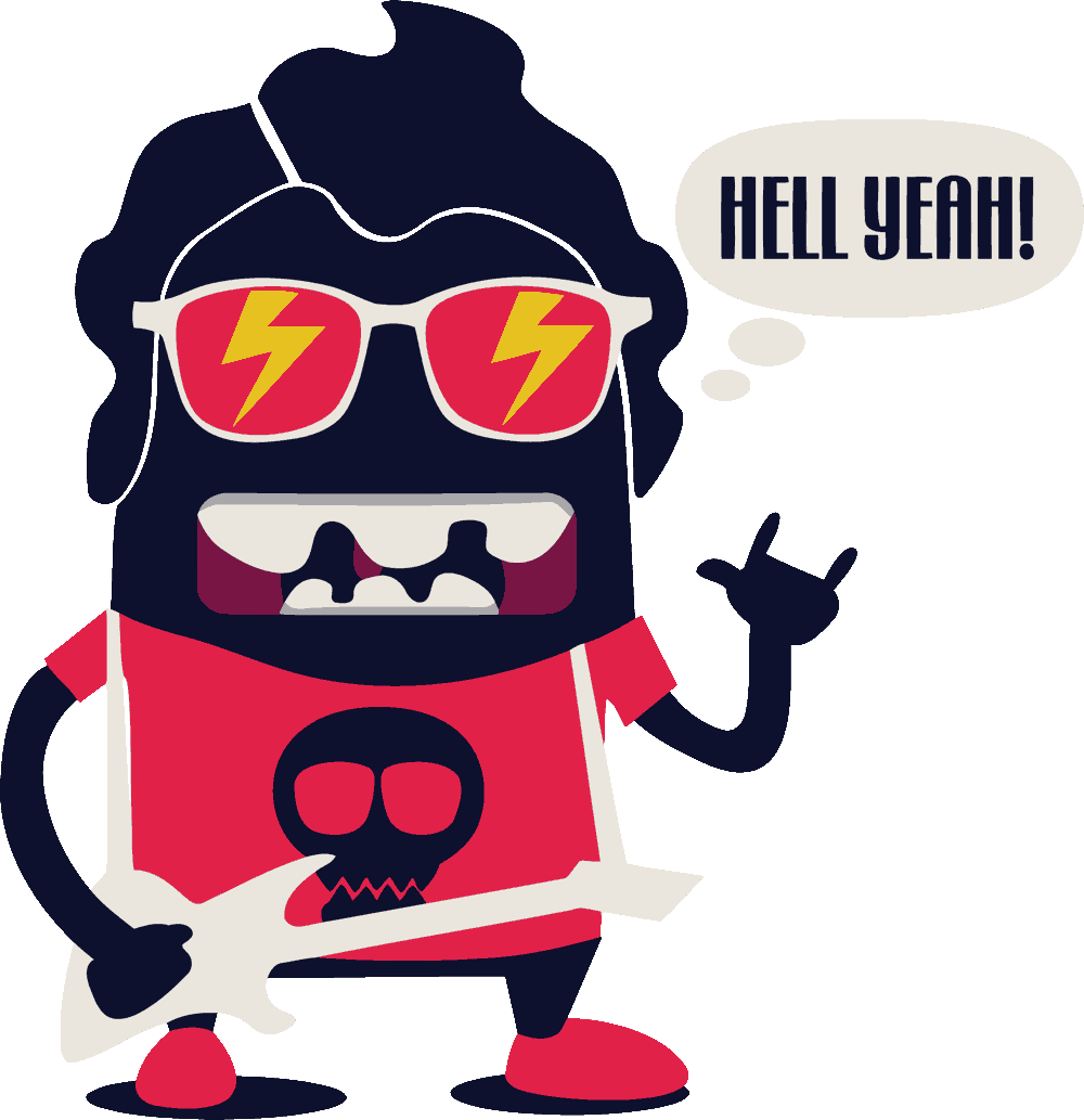 - Hell Yeah Monster Un monstruo rockero con gafas de rayos, guitarra y diciendo “HELL YEAH!”. Ideal para los niños con actitud y espíritu rebelde.