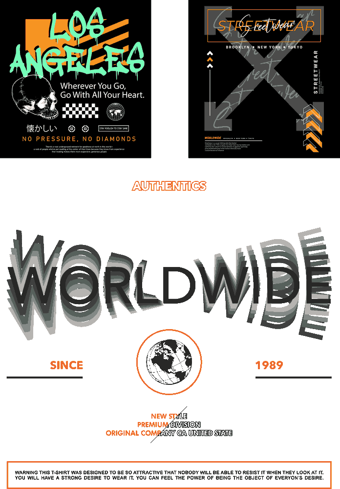 Pack 7 vectores Streetwear diasf de alta calidad para la impresión de sublimado, serigrafia y dtf