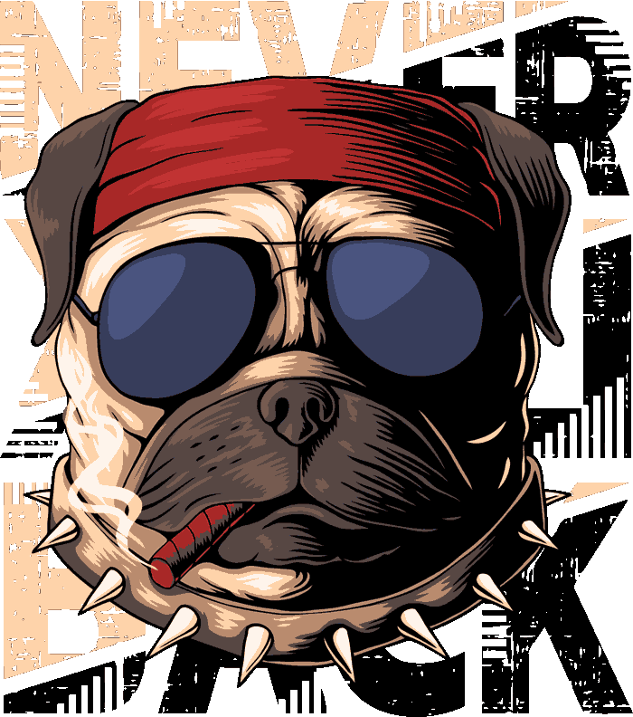 "New Level unlocked. Pug rebelde con collar de púas, bandana roja y puro estilo bad boy. Diseño vectorial hardcore para camisetas rock, urban wear, posters y todo lo que necesite actitud nivel experto. ¡No apto para pugs tímidos!"