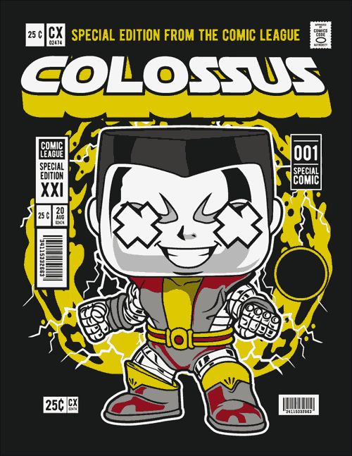 - Colossus 💪 El poderoso mutante ruso de los X-Men en versión Funko Pop. Diseño metálico, imponente y lleno de energía con fondo explosivo.