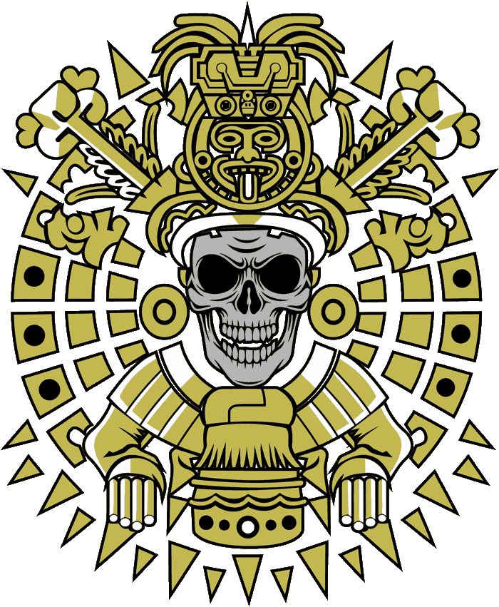 Calavera Solar (Guardián Dorado): Un diseño geométrico basado en el simbolismo del sol y la muerte, ideal para grabados o marcas con un toque oscuro y elegante.