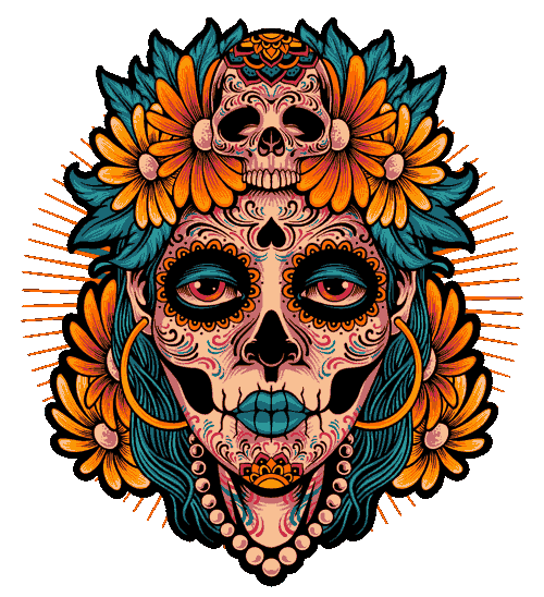 Ideal para tiendas de ropa urbana, diseños mexicanos, celebraciones de Día de Muertos o clientes que buscan arte con mucha personalidad.